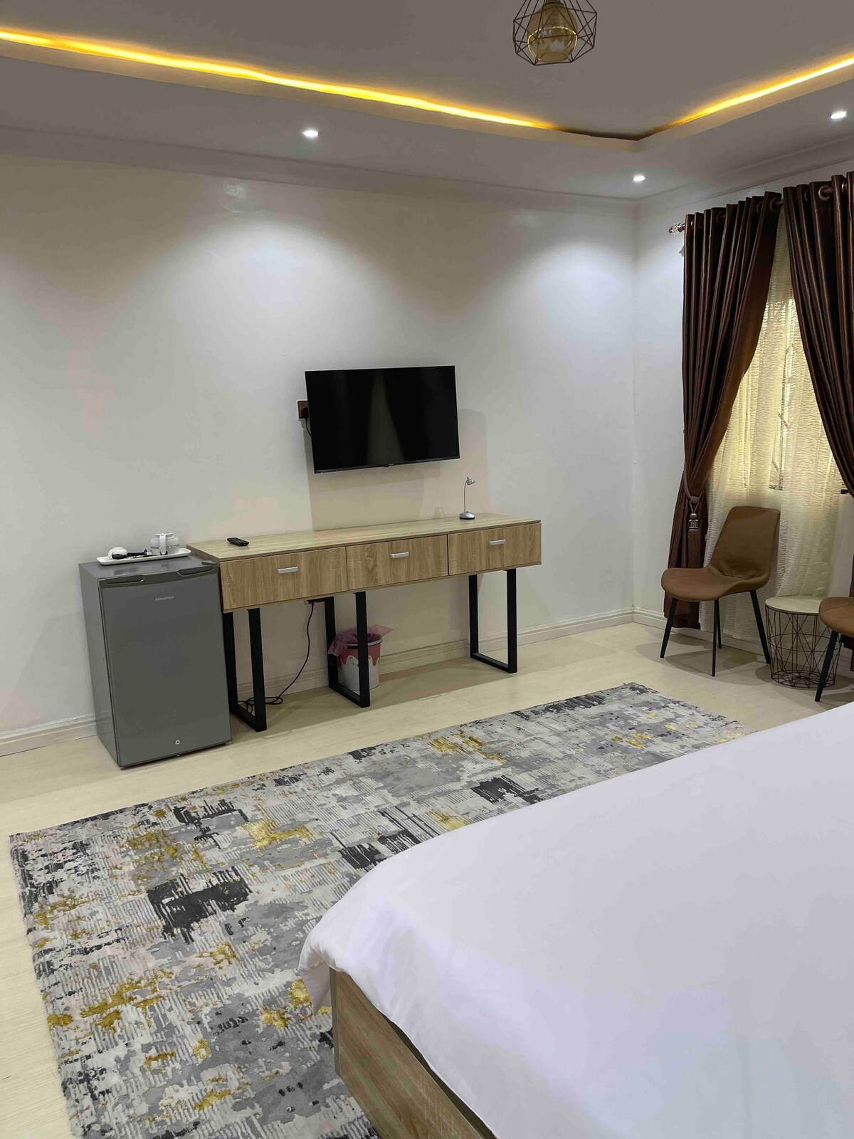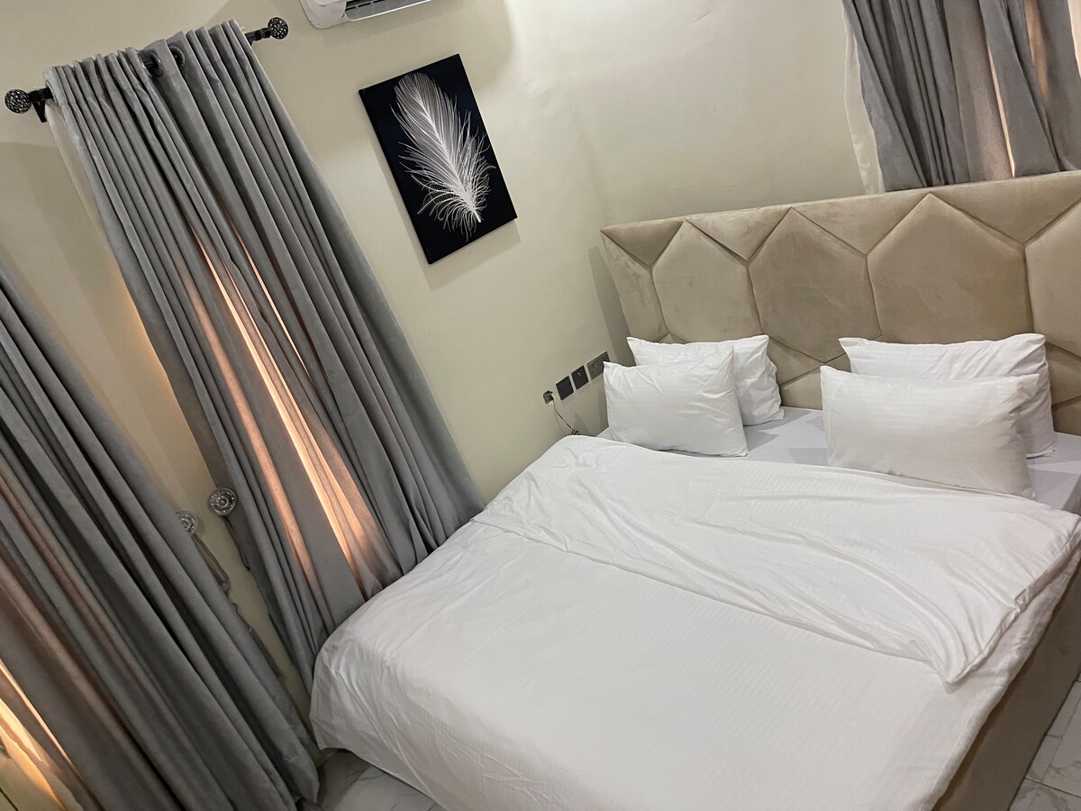 with amenities such as a smart LED TV with USB port, Mini-fridge, air –conditioning, working desk, tea and coffee making facilities, sofa, Wi-Fi . The Apartment is centrally located within 5 - 10 minutes traffic-free drive to Murtala Mohamed International Airport, Ikeja city mall and other hang out places. We have: 4 units of Single Executive Rooms with WIFI, Netflix and google enabled Televisions. Our environment is secured and the ambience is next to none. Serenity is our watchword.