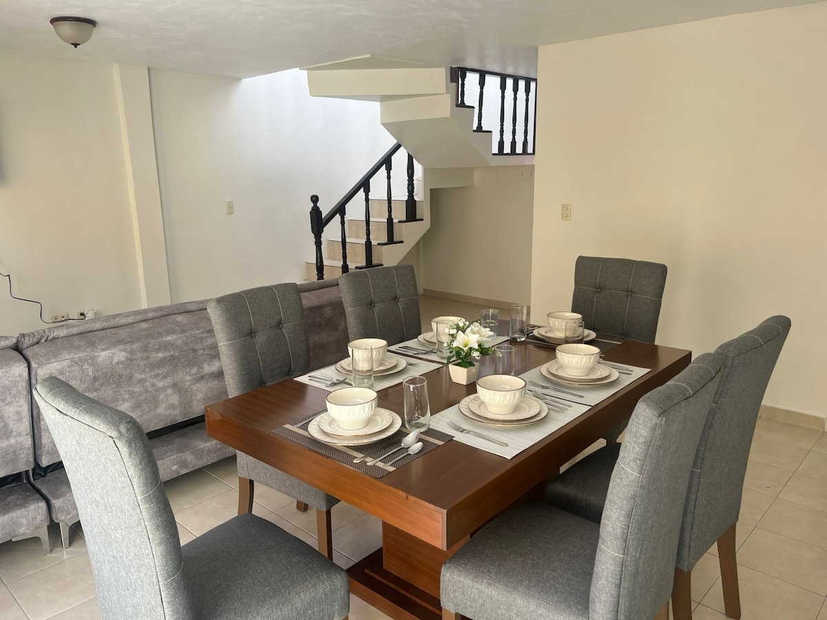 Enjoy a comfortable and modern stay in this cozy apartment located in the center of Perote, ideal for couples, families or groups of up to 5 people. Its location is unbeatable: Just 3 blocks from the Perote zócalo and 4 blocks from the historic San Carlos Fortress, you can easily walk to see the town's main attractions. A few steps away you will find a pharmacy on the corner, a typical food restaurant one block away and a Bodega Aurrerá just three blocks away.