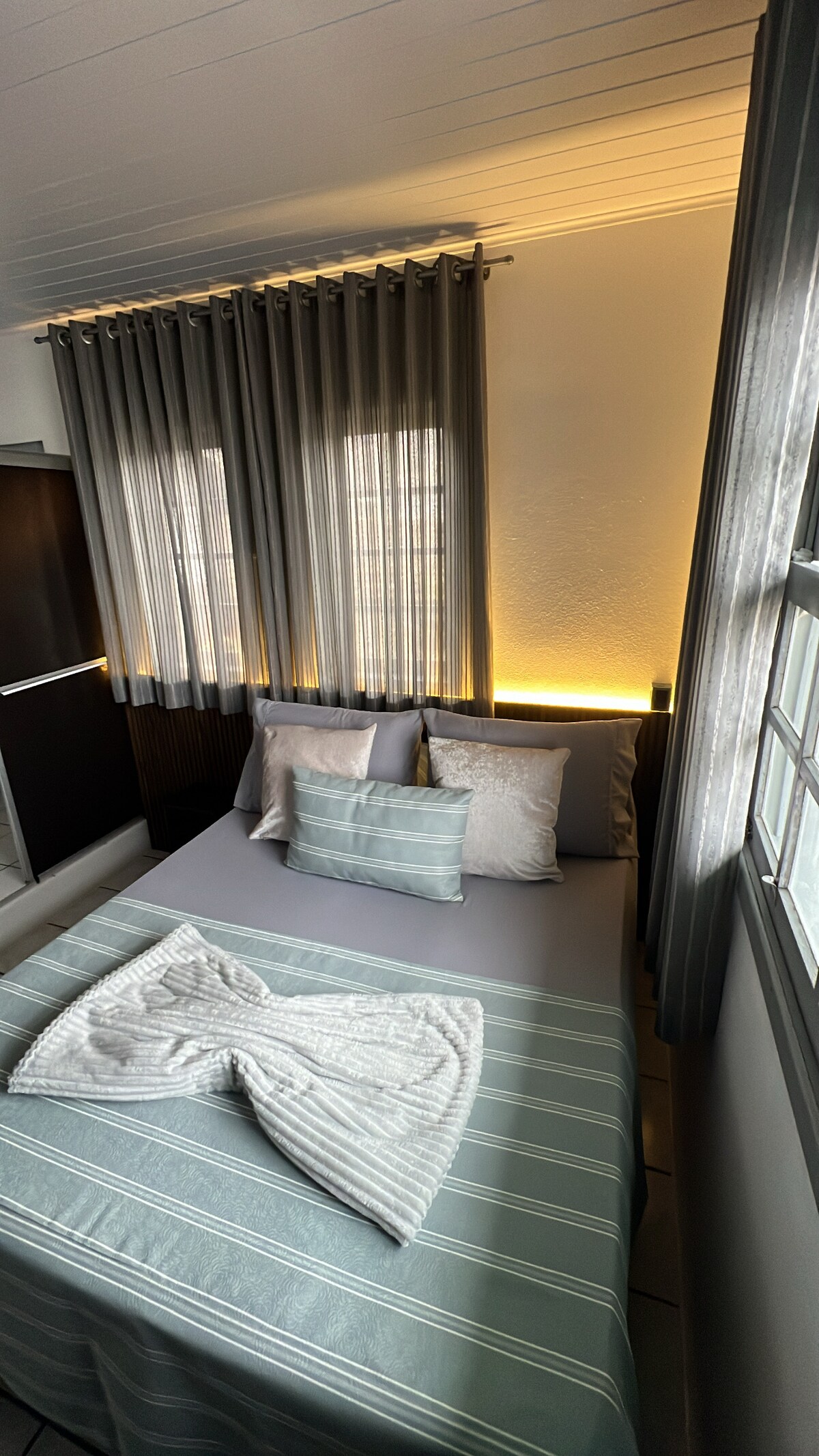 Um quarto aconchegante e cheio de estilo que conta com frigobar, TV com todos os canais, ar-condicionado e fica localizada à beira mar da Prainha do Farol de Santa Marta.