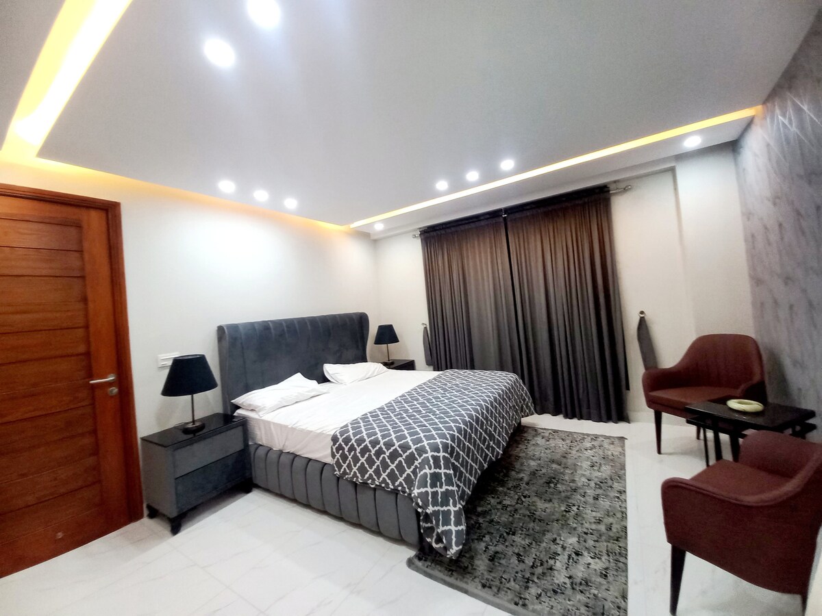 Welcome to a professionally-designed 1-bedroom apartment located in one of Lahore’s most secure and vibrant residential communities — perfect for short stays during business trips, and families, fitness lovers, and those who enjoy entertainment on-site. Thoughtfully furnished for comfort, convenience, and style, this space offers everything you need to feel at home. • Swimming pool • Gym & fitness center • Cinema room • Kids play area • Paid mess (fresh meals available) Community Center