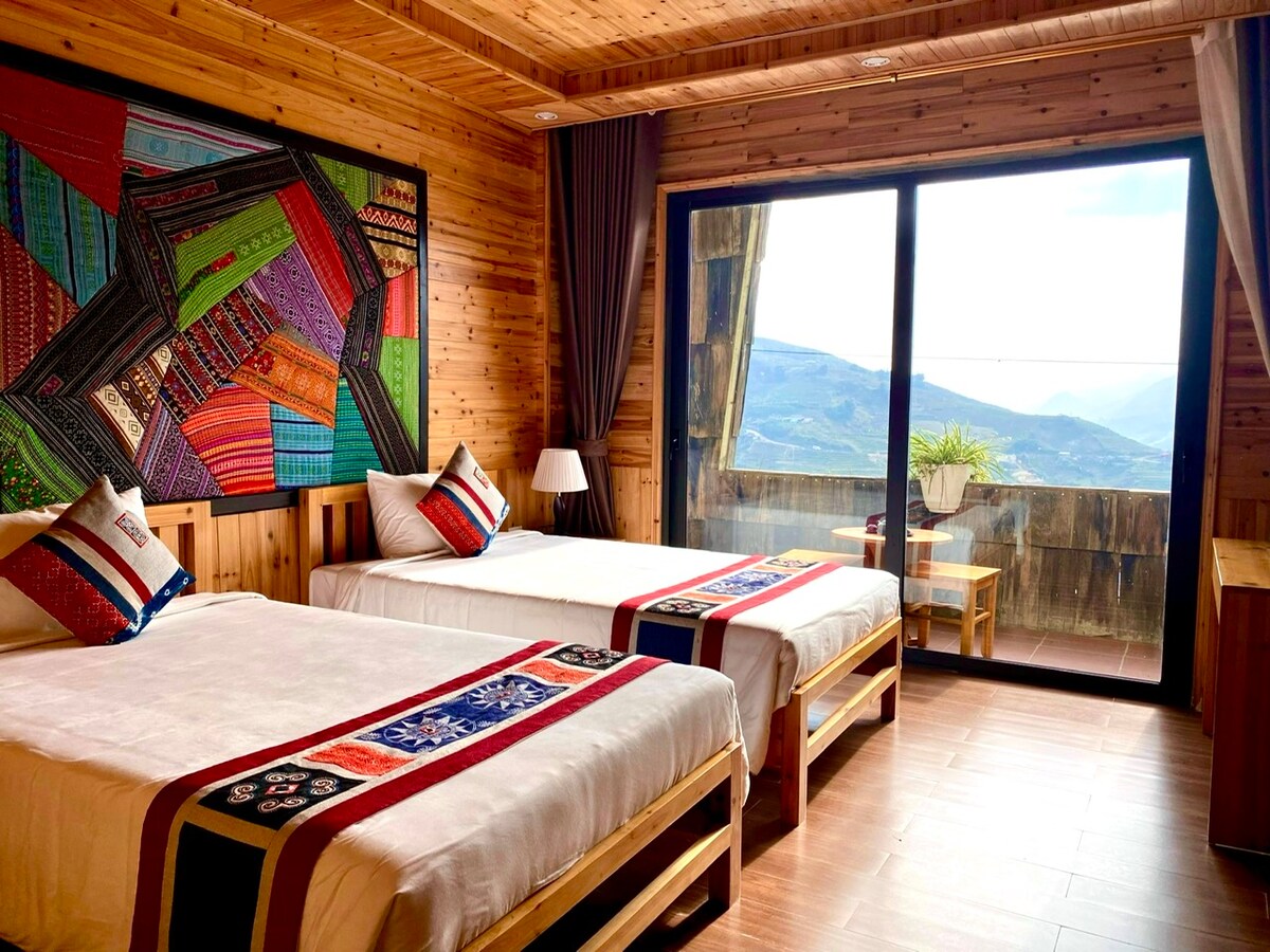 Welcome to Ta Van Tay River Stay: Relax, unwind and enjoy your stay at our peaceful River Cabin in the wonderful Ta Van village. The cabin looks out to the Muong Hoa River and the Hoang Lien Mountain Range. The river flows in front of the cabin giving peaceful white noise that relaxes you and giving a good nights rest. The room is perfect for a family traveling together or a group of friends. The room has an ensuite bathroom, 2 beds (1dbl, 1sgl), many amenities and a coffee station. Perfect view