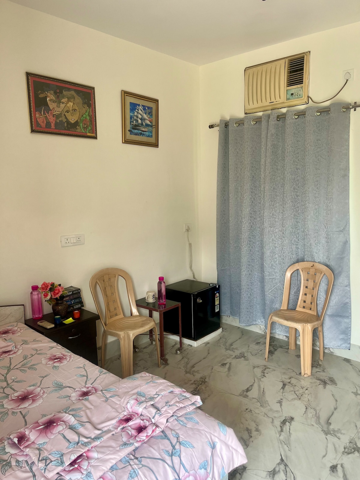 Welcome to your private, modern studio apartment in the heart of South Delhi's posh Amar Colony, Lajpat Nagar 4. This thoughtfully designed space offers full privacy, a bed, a desk and chair, a fully equipped kitchen, a clean bathroom, and a private balcony - perfect for short or extended stays. The apartment is in a gated building with zero steps and a lift, making it fully accessible. It's ideal for couples, solo travellers, business visitors, and medical tourists. The location is central.