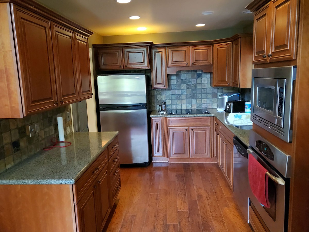 This is a 570 sq ft building with BR, BA and living area. It is located in beautiful Indian Valley. Lots of wildlife including deer, turkey, bear, and geese. The Kitchenette has a coffee and tea maker, refrigerator, hot plate, electric skillet and microwave, and should have enough tools for you to make simple meals. I also provide a grill on the patio, some outdoor furniture so guests may enjoy coffee, tea, in the morning or another beverage while watching the stars at night.