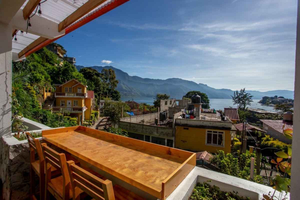 Enjoy a luxury apartment on the 13th floor with panoramic views of the world’s most beautiful lake. 24/7 security, heated pool, jacuzzi, and dock. Just 1 mile from town (22 min walk or 5 min tuk-tuk ride, $1.25 p/p). Near Atitlán Nature Reserve with butterfly garden, trails, and canopy tours. Fully equipped kitchen with breakfast supplies (bringing extra food is recommended). Towels are provided for the bathroom, but not for the pool or lake. Parking included (max. 2 cars).