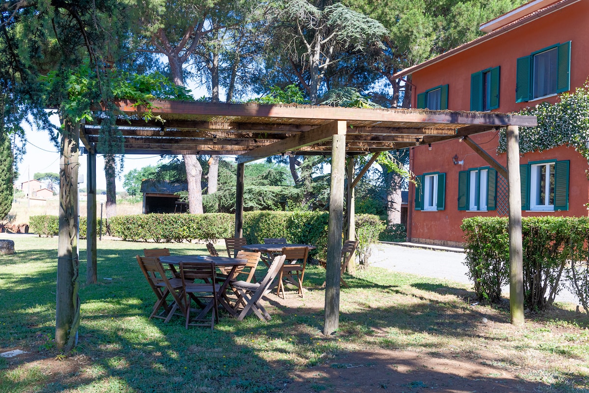 Spend your Roman holidays in an ancient Casale, relaxation and fun are guaranteed! Our Casale is located close to the park of the Roman coast on the edge of an agricultural estate overlooking the Tiber, reachable on foot or by bike. We have a park with a shared swimming pool and internal parking. We are only 10 minutes from the sea and from the excavations of Ostia Antica, and 15 minutes from the center of Rome. The airport is 15 minutes away by car.