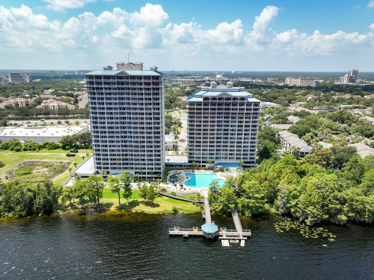 Welcome to this renovated and fully equipped condo located on the 10th floor with the best view in Central Florida. Very spacious and cozy, it has a balcony where you can see the sunrise from Lake Bryan, or even space craft launches from the East coast. On the other balcony in your room you can experience a private view of theme parks' fireworks. As part of The Blue Heron Beach Resort you can also enjoy all the amenities including pools, fitness center, game room, dock walkway deck and more.