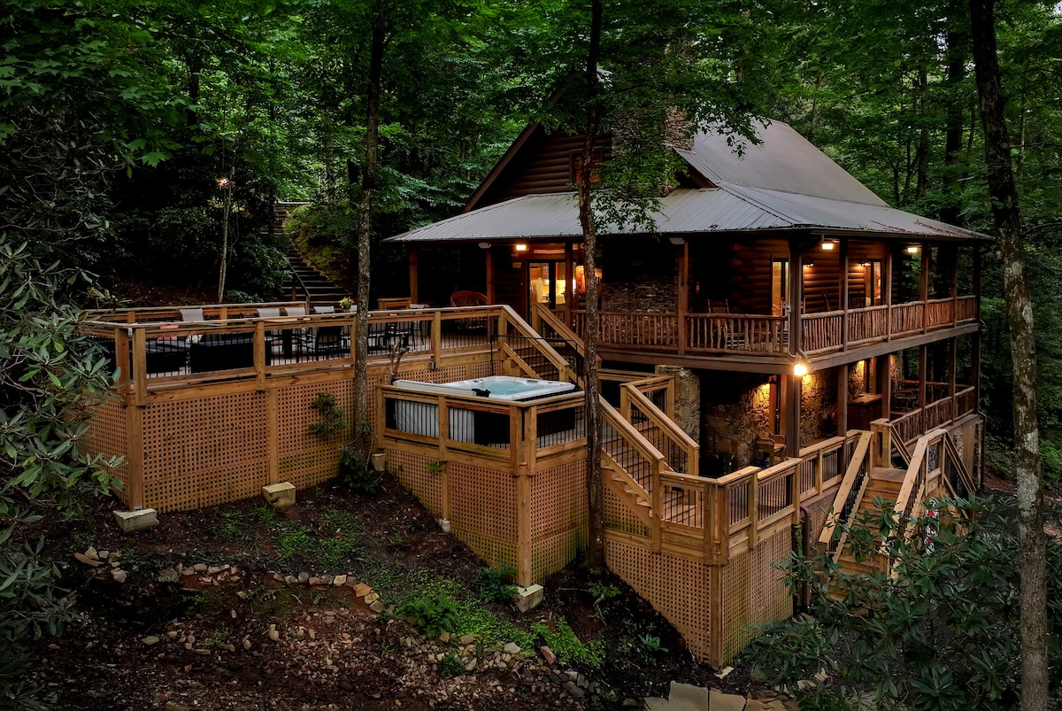 Secluded 4 Bedroom Cabin w/ Hot Tub and Waterfall!