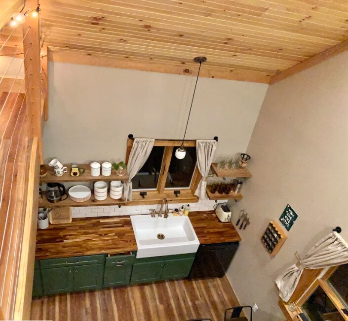 This cozy studio style cottage sleeps 2 guests. It has a queen bed and a full bath w/ shower. There are two Stressless leather reclining chairs with ottoman’s and a side table for your comfort. There is a washing machine in the cabin & outdoor clothes line for drying. *Laundry detergent is NOT provided* We are dog friendly --NO additional fee. (NO CATS ALLOWED). TV Steaming provided (Hulu live, Amazon Prime, Netflix and Apple TV).