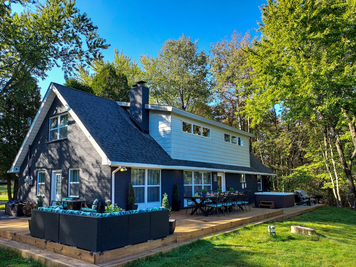 Escape the ordinary and step inside our modern chalet, a true lakefront with kayaks and canoes. Our modern kitchen is equipped to cook a chef’s meal and feast at a rustic farm table. Relax by the crackling fire of the fireplace. Indulge in the Finnish sauna after hiking or skiing. The natural light, pine trees and panoramic views of the lake, make it a peaceful place to enjoy some nature. Comfort awaits with 100% cotton linens, firewood provided on-site, and 4 Smart TVs and SPAN EV charger.