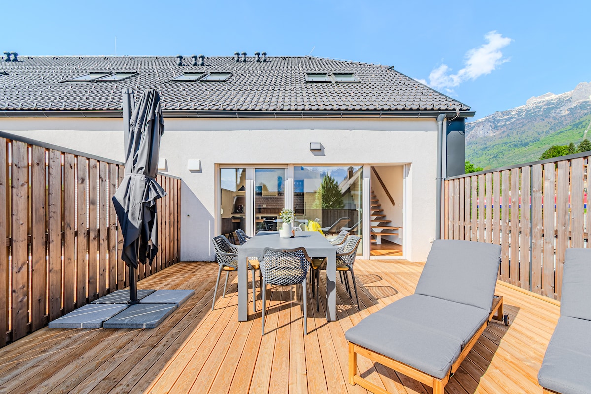 House apartment with a view of the Karavanke Mountains and terrace
