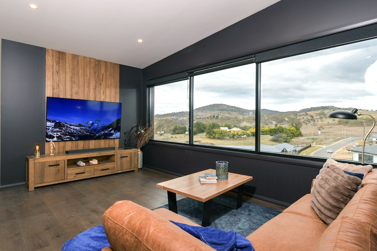 Experience luxury in East Jindabyne at this new 3 bedroom mountain retreat! Built in 2022, this home blends modern design with cosy comforts, making it perfect for families, groups, and adventure seekers. ⭐ Ping Pong table for family fun ⭐ Open-plan living with wood fireplace ⭐ Chefs kitchen with gourmet Falcon stove ⭐ Alfresco BBQ area with outdoor heating ⭐ Dual living areas & dedicated office nook ⭐ Zoned heating/cooling + heated concrete floors Book your Snowy Mountains escape today!