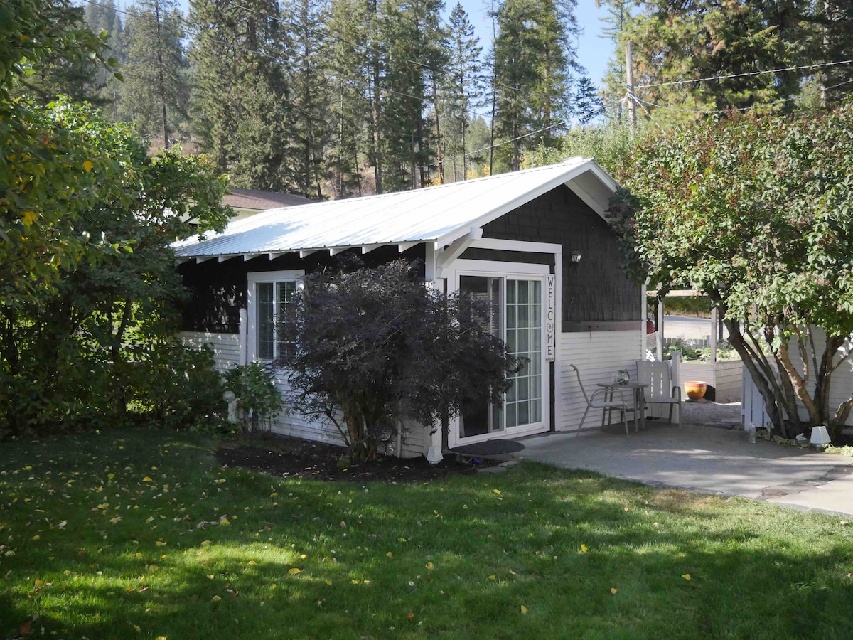 Studio guest house with private indoor spa on 600 feet of Kootenai River waterfront in the middle of National Forest. Spectacular views, extensive decking, full kitchen, Keurig coffee maker (K-cups provided), microwave, stove, oven, refrigerator, DVD, mini-split AC & heating, fold out couch. Surrounded by gated perennial gardens, private walks on property, beautiful path to riverside. Easy access to hiking, fishing, mountain biking, skiing, snowshoeing. Glacier National Park 2.5 hours East.