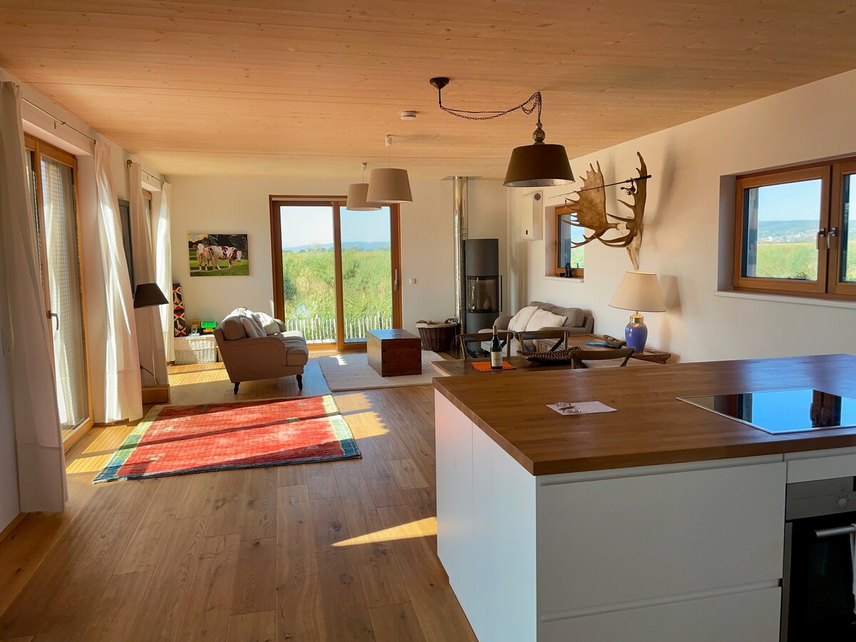 Welcome to Strohlehm'zhaus, where the combination of wood, clay, and straw not only creates extraordinary architecture but also offers an eco-friendly and cozy atmosphere. The quiet location and the large garden offer relaxation. The accommodation is centrally located: 2 km to the lake, 200m to the vineyards, 1 km to the train station, and 1 km to the bike path (National Park). It's the perfect starting point for many excursions: thermal baths, Mörbisch festival, outlet shopping, and Vienna.