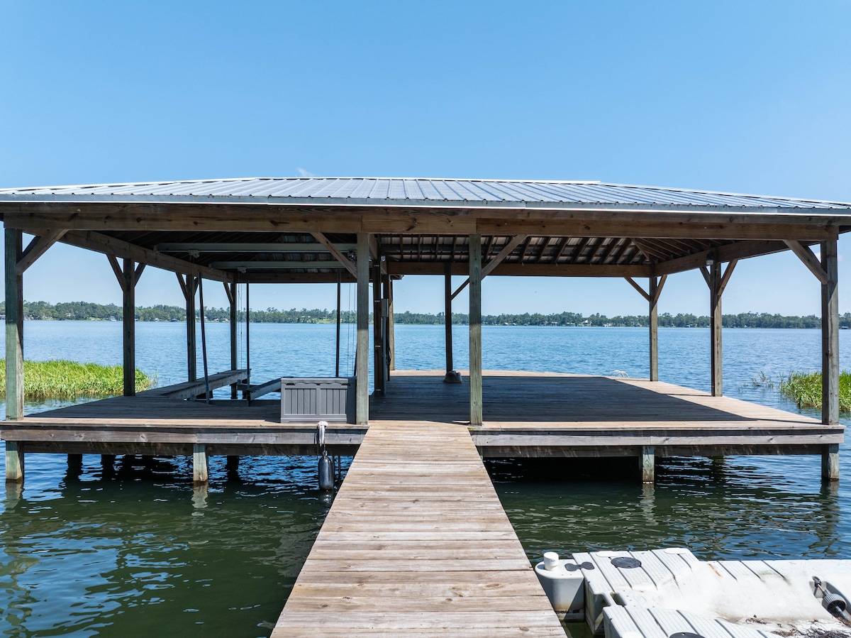 Located in Lake Park, GA just south of Valdosta, GA. This cottage is newly renovated inside and out and sits directly on the waters of Lake Long Pond. Enjoy boating, skiing, tubing, canoeing, paddle boarding, fishing and more. Large open floor plan with wall of windows and huge deck overlooking the lake for beautiful sunset views. Long dock with diving board at the end. Private white sandy beach and boat ramp on property. Perfect for gatherings and entertainment. Near Wild Adventures Theme Park.