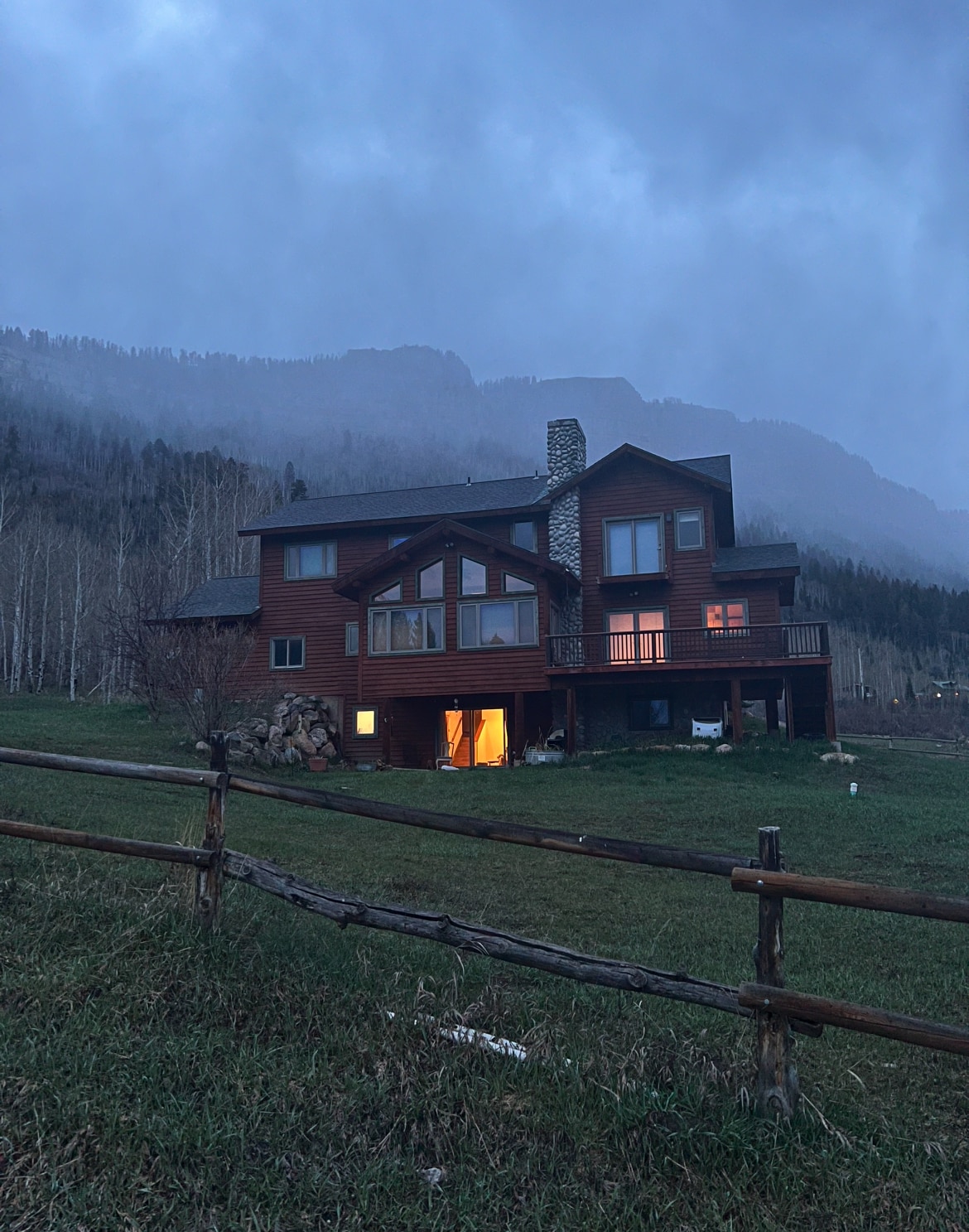 The main lodge is approximately 1900 square feet with 4 bedrooms and 4 baths which are private to each room. There is a main kitchen and living area with wood burning fireplace and woodstove. There is also another room with a small full kitchen. The addition on the back of the lodge is a separate Airbnb listing but may also be available. This addition is 420 sq ft. With a kitchen, bath, king and a twin bed. Cabin is across from visitor center and post office at north end of Town.
