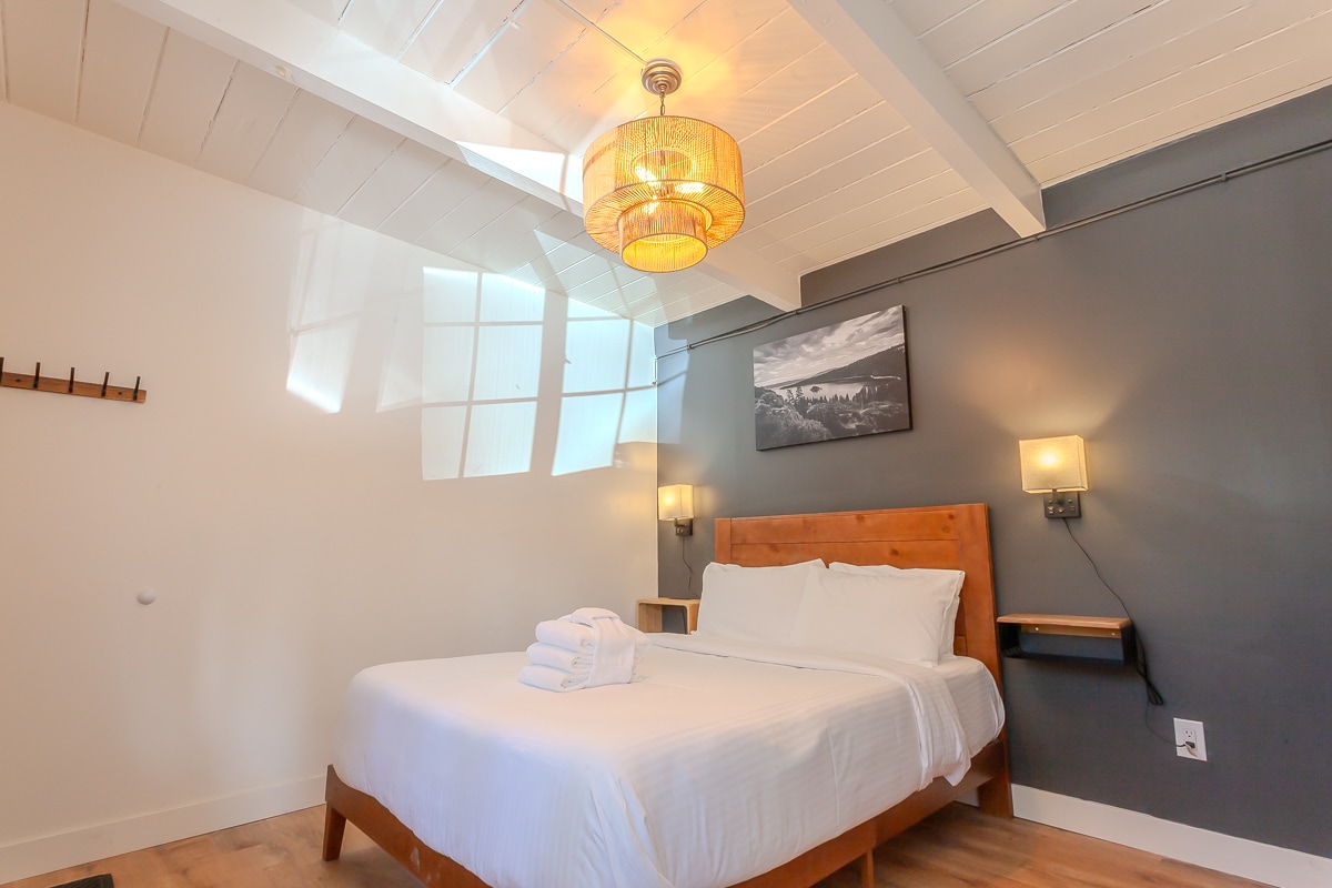 This is a bunk in a 4-bed shared room. Bunks are equipped w/ curtains, outlet, reading light, hooks & locker; bathrooms located down the hall. The West River House is a simple and affordable historic hotel in downtown Truckee - walking distance to bars, restaurants, and the river. It’s perfect for those looking to explore and relax without distractions. Although there is no TV, the free Wi-Fi is super fast. Smoking and pets are not permitted.