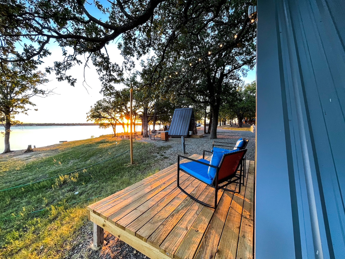 Tucked along the shoreline, the Kimas at Paradise on Lake Texoma offer a romantic, nature-filled escape with unbeatable lake access. Enjoy a private boat ramp, day-use area for swimming, kayaking, or fishing, and a setting that doesn’t get closer to nature—short of tent camping. These waterfront A-frame Kimas feature a full bed, AC/heat, Bluetooth speaker, fire pit, outdoor kitchen with BBQ grill, and indoor/outdoor seating. Linens are provided, with bathhouse facilities just a short walk away.