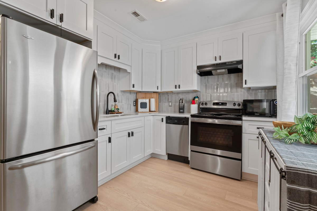 Guests rave about their stays! Pick seasonal fruit from gardens, relax by the creek, roast s’mores at the firepit. Bright, newer-built on 3 acres, 3 bdrms, 2 bath, 5 comfy beds, sleeps 8, Roku TVs in each bdrm & living rm, high speed fiber internet, fully stocked kitchen (glowing reviews), kid toys, sunroom views, washer/dryer. Within 10-15 minutes to: NC Zoo, Seagrove Pottery, Uwharrie Trailheads & Starworks. Superhost replies within the hour—book your stay today @ Uwharrie Creekside Escape!
