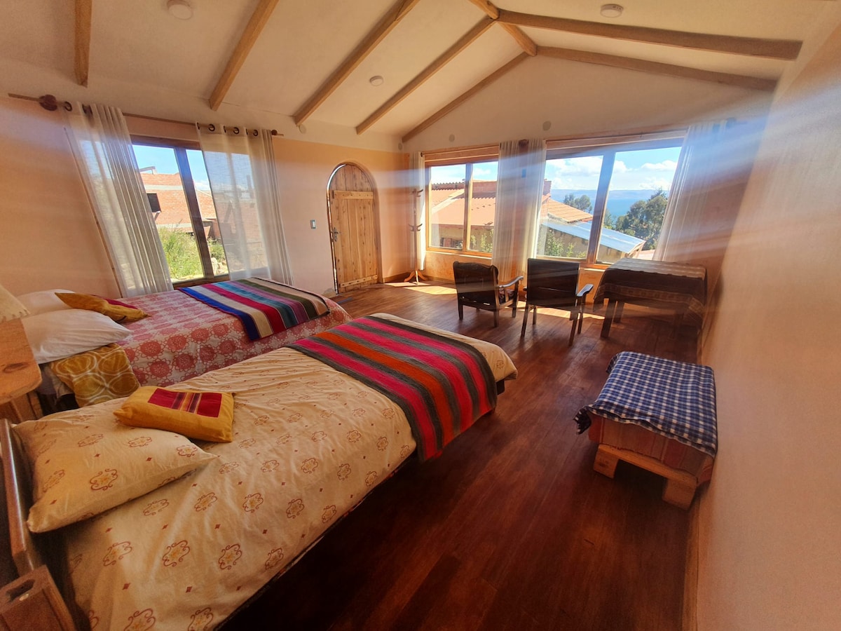 Disconnect from your worries in this spacious and serene space in Isla del Sol Bolivia, our place offers views of the lake with the sunrise, recharge your energies and share the atmosphere of the sacred lake of the Incas.