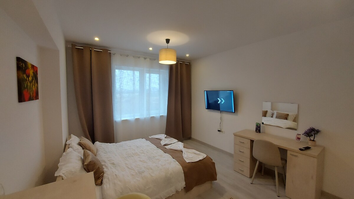 A brand new studio apartment with a modern design and an amazing view over the city, located in an new residential complex.The studio is located at just 4 minutes walking from the 1 Decembrie 1918 subway station, next to the building we have supermarket Lidl, Auditorium Pallady and easy access to A2 highway. Also underground free parking is available during your stay. Inside the cozy studio we have smart TV+Netflix, free Wi-Fi, plus self checking available.