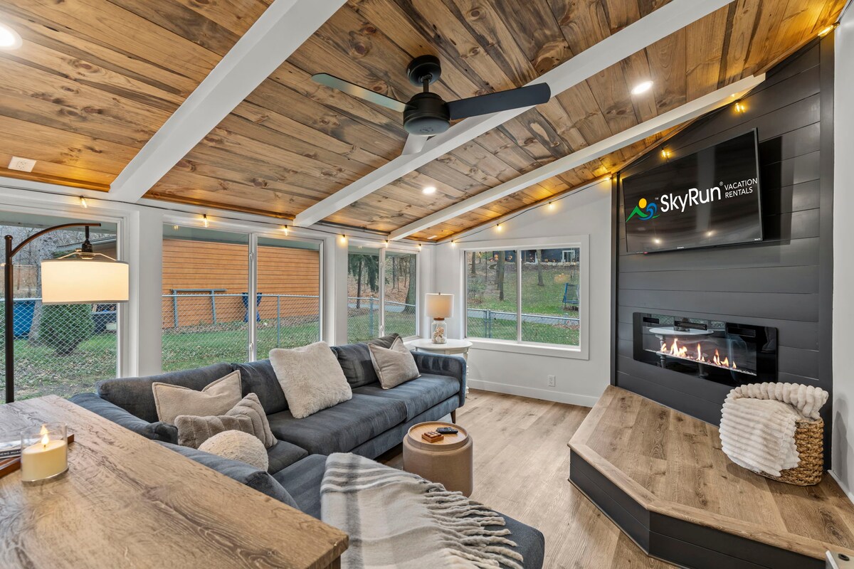 Relax and let life slow down a bit at the Crafted Cottage w/NEW HOT TUB overlooking the lake! Renovated home on peaceful 777 acre Maple Lake. Enjoy views of the water from the family room through floor-to-ceiling windows. Play games, cook your favorite meals in the full kitchen or take in a movie on the smart tv. Big living room to hang out in! Year round fun at this cozy cabin. Visit the local brewery or wine bar + the best coffee in town is right up the road!