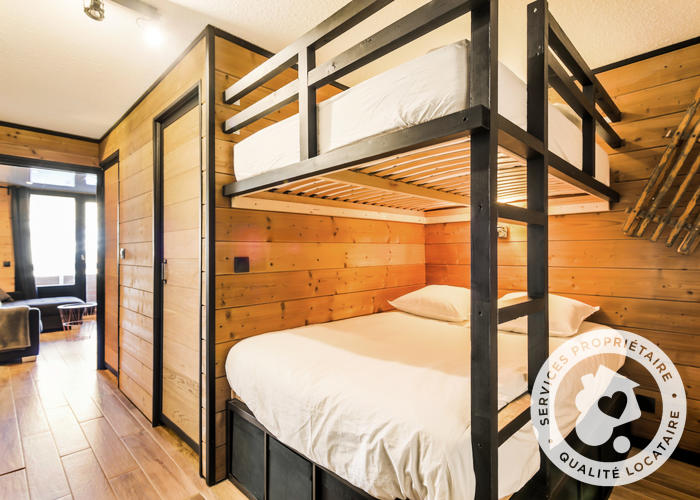 Very nice studio, 21 m², 2/3 people. In a luxury residence, quiet and well located, Cognet district. * 200 m from shops (supermarket, bank, ski shop, restaurants, tourist office, post office...) * Departure and return skis at the feet (ski lift for departure, slope or return skiers) Accommodation: refurbished with sofa bed and 2 bunk beds. Equipped kitchen. Separate shower and toilet. Private ski closet. Private parking (non-nominative space). View from 1 terrace, no balcony.