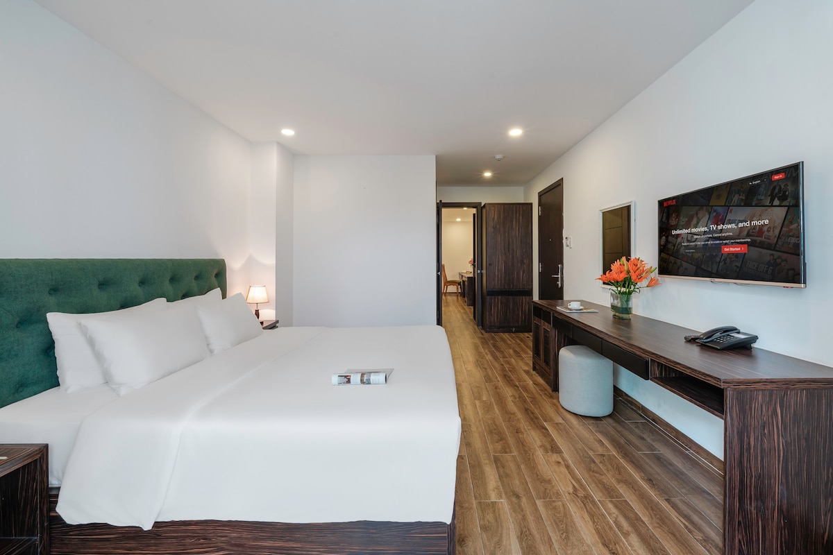 ✻ A penthouse apartment (120m2) features 2 bedrooms (1 king bed each room), 1 living room ✻ Located in the heart of the city. Plenty of famous landmarks, food and drink nearby ✻ Air conditioning is available. Fully equipped kitchen, washing machine, iron, hair dryer, etc ✻ Smart TV 43 inch. Fast wifi internet. Laptop friendly work space ✻ Free car parking on premise. ✻ 24/7 front desk support. Motorbike & car for rent, airport shuttle ✻ Private balcony w panorama city view