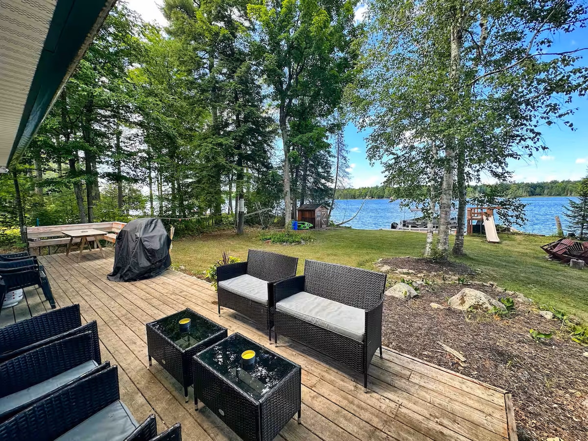 Experience a classic Canadian Thermal Nordic Cycle in your personal staycation; private sauna, refreshing lake plunge, and a soothing hot tub, all complemented by an outdoor campfire. Perfect for relaxation and reconnecting with nature. This waterfront cabin style lake house is located off the historic K&P trail on Calabogie Lake and steps away from the 18th green of the Calabogie Highlands Golf Course. Booking Friday-Friday in July & August.