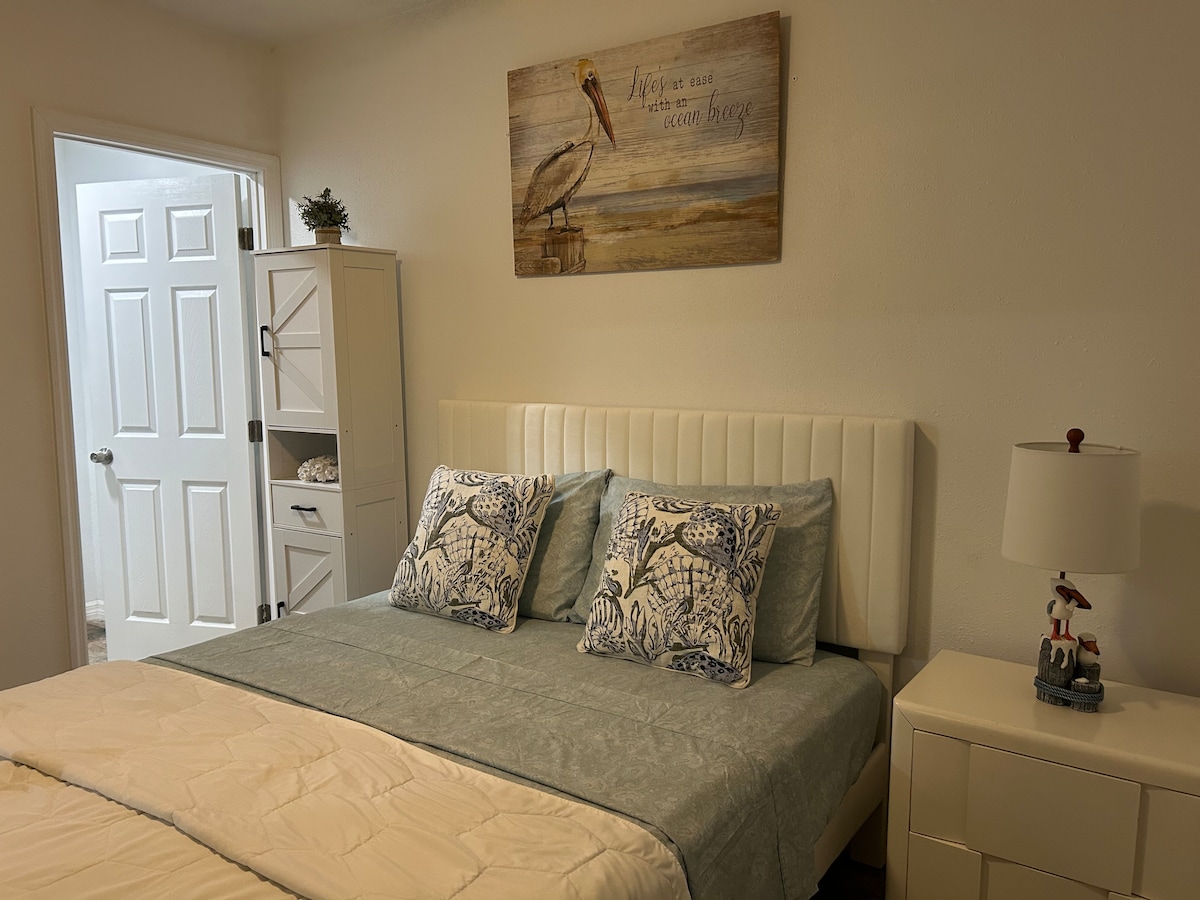 🌴 😎 Stunning Key West Style Retreat featuring: - Memory foam Queen bed - Covered porch for unwinding - Hotel linens, towels and many creature comforts Enjoy the beach 🏄♂️ vibes decor & accents in this spacious two bed two bath property. Located less than three miles from the white, sugar sand of Clearwater Beach 😎 (rated #1 beach in the US by Trip Advisor). Relax by the oversized resort style pool and clubhouse. Convenient walking distance to nearby restaurants and grocery stores.