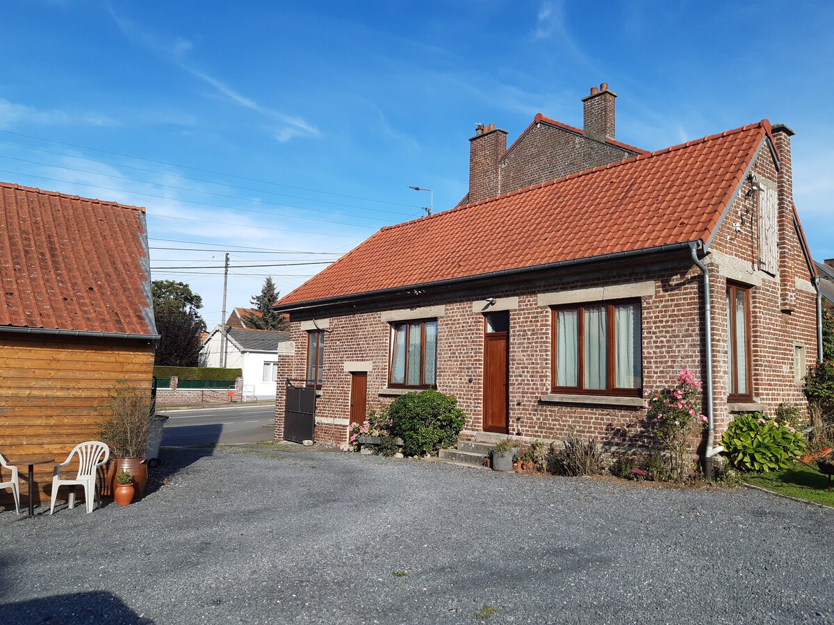Completely independent cottage in a quiet corner of nature. Easy access. Completely refurbished with all the comforts. New bathroom including toilet, sink on furniture and Italian shower. Living room with sofa, kitchenette including microwave grill oven, fridge and induction cooktop We provide bed linen and towels Located 5 min from Caudry and its lace museum. 10 min from Le Cateau-Cambrésis and the Matisse Museum A2 highway 15 min away