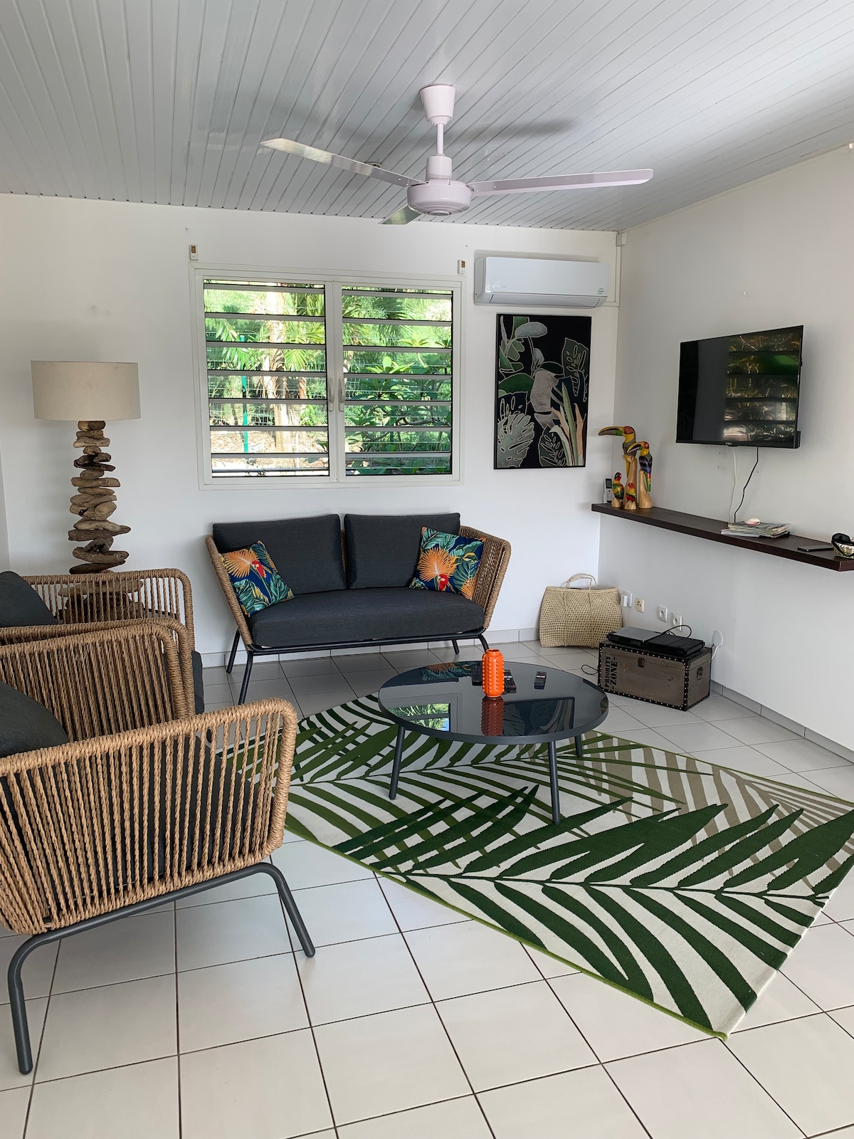 Have a great time at this place to stay on the heights of Anse à l'Âne in the middle of a tropical garden. Located on the ground floor of a Creole villa, in a small secure subdivision, it offers a living room with equipped kitchen, a bedroom with mosquito nets and ceiling fan. 2 terraces complete this accommodation. Access is via a staircase or ramp from the parking lot. The beach, shops and restaurants are 3 minutes by car and 10 minutes on foot.