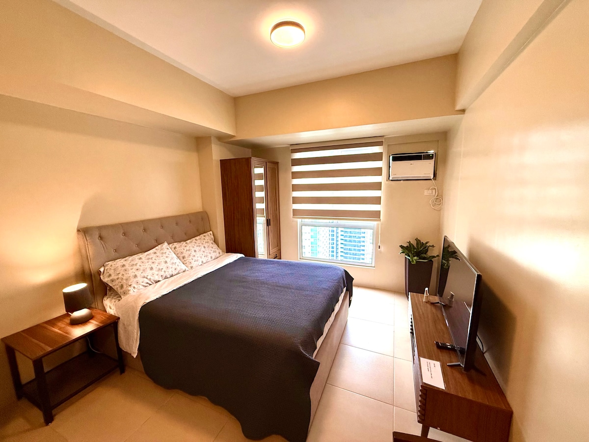 No detail is overlooked at this charming and upscale place to stay. A one bedroom suite inOne Manchester place with a beautiful finish and cozy feel bedroom and a living room that is convertible to a bedroom. Overlooking the beautiful Condos and hotels in Mactan Newtown and right in front of groceries, restaurants, bars, pharmacy and coffee shops. Enjoy the pool, spa and game room within and beach which is only a 5 minute walk. A perfect staycation. You don't need to worry about anything.