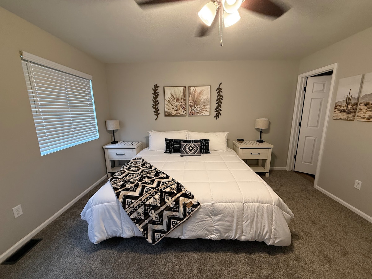 🌵Welcome to The Chey Town Hideout!🏜️—your cozy desert retreat in Cheyenne. This two-level home offers 2 comfy bedrooms, 2 full baths, charming pull-down stairs, and a well-equipped kitchen. TVs in both bedrooms and the living room keep everyone entertained. Ideal for families, couples, or solo travelers seeking a stylish and relaxing escape.