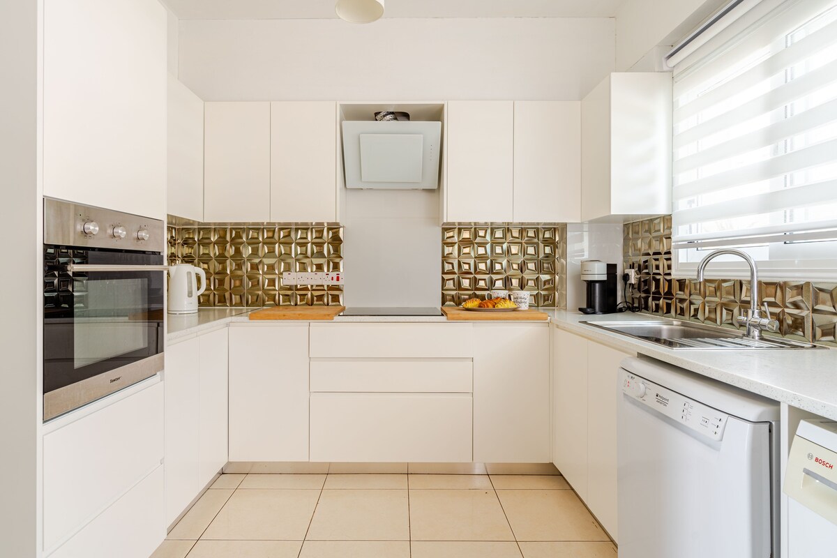 New and tastefully furnished, perfect for those looking for a relaxing and high standard accommodation. The stylish apartment is very close from the main beach (foinikoudes) and can comfortably accommodate 4 up to 5 guests and even 6 with an additional single bed in the living room! Is found on the first floor (with lift)heading with only 8 mins easy walk to the beautiful beach and 6 mins walk to the main bus stop. The strategic position will allow you to very easily walk to all major points.