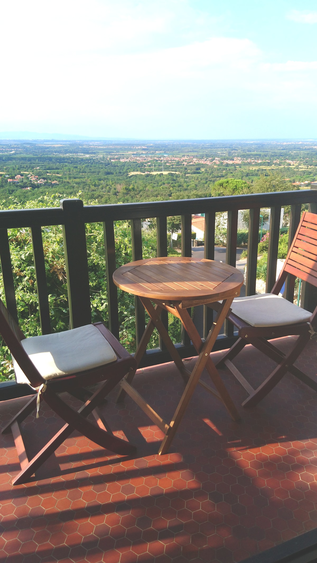 Confortable meublé, au calme avec grand balcon ensoleillé et vue panoramique. Situé entre mer et montagnes. Parking privé gratuit en pied de logement Linge de lit/de toilette fournis.1 seul lit en 160x200 A 2 minutes du péage du Boulou Par règlement de copro, ne convient pas aux enfants de 0 à 8 ans Logement prévu pour 2 personnes max. Pas d'invité dans le logement sans notre accord. Fumer est possible dehors sur le balcon. Fumer à la fenêtre est totalement interdit! Animaux non acceptés