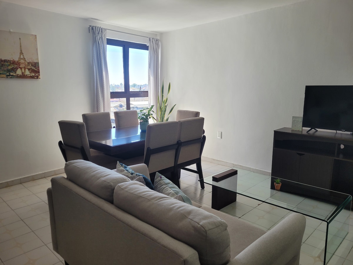 Small but comfortable apartment, located on the ground floor with a bedroom, kitchen, dining room and a full bathroom and half bathroom; with wifi, Netflix; ready for you to occupy it in its entirety. 10 minutes from Plaza las Flores with Cinepolis mall etc. Parking is shared with my house Located in the Santa Cecilia neighborhood, easy to get to and close to fast communication routes