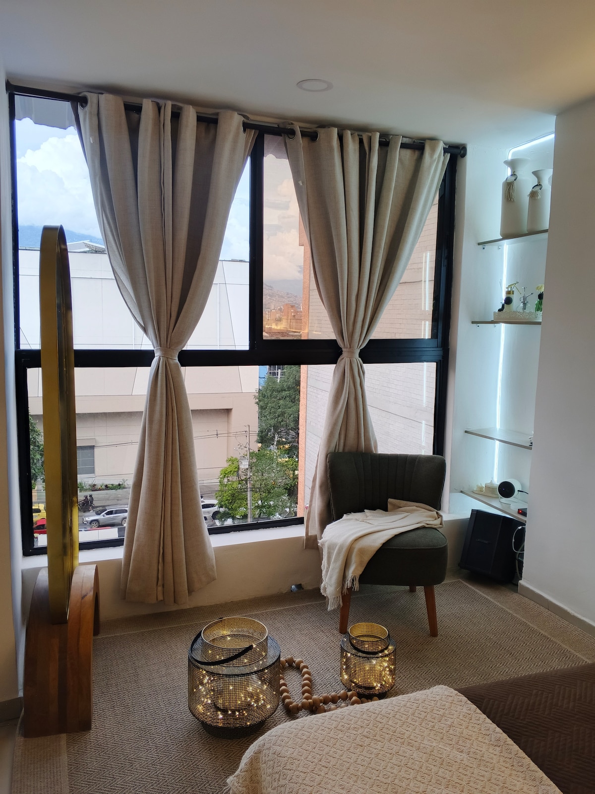 Welcome to Medellín, your home away from home! This beautiful loft on the 8th floor, with a balcony and city view, is in the 30 Living Building, near the Los Molinos Mall, the University of Medellín and the Medellín Clinic, a few blocks from the Parque de Laureles, where you can find restaurants and bars for all tastes. In front of the Plus La Palma metro station. Top floor terrace with Jacuzzi and Coworking. 24-hour reception, digital lock, self check-in.