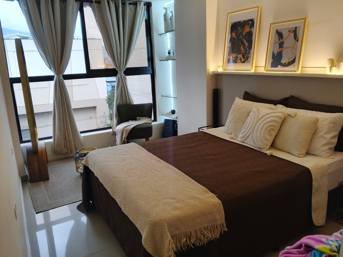 Welcome to Medellin! in this lovely home away from home. Easy to get there and great views!! Stylish and secure in a prime location near malls, parks and public transport. Perfect for exploring the city or working remotely! The building has coworking, terrace with jacuzzi and a wonderful view over the city, play zone and 24 hour reception.