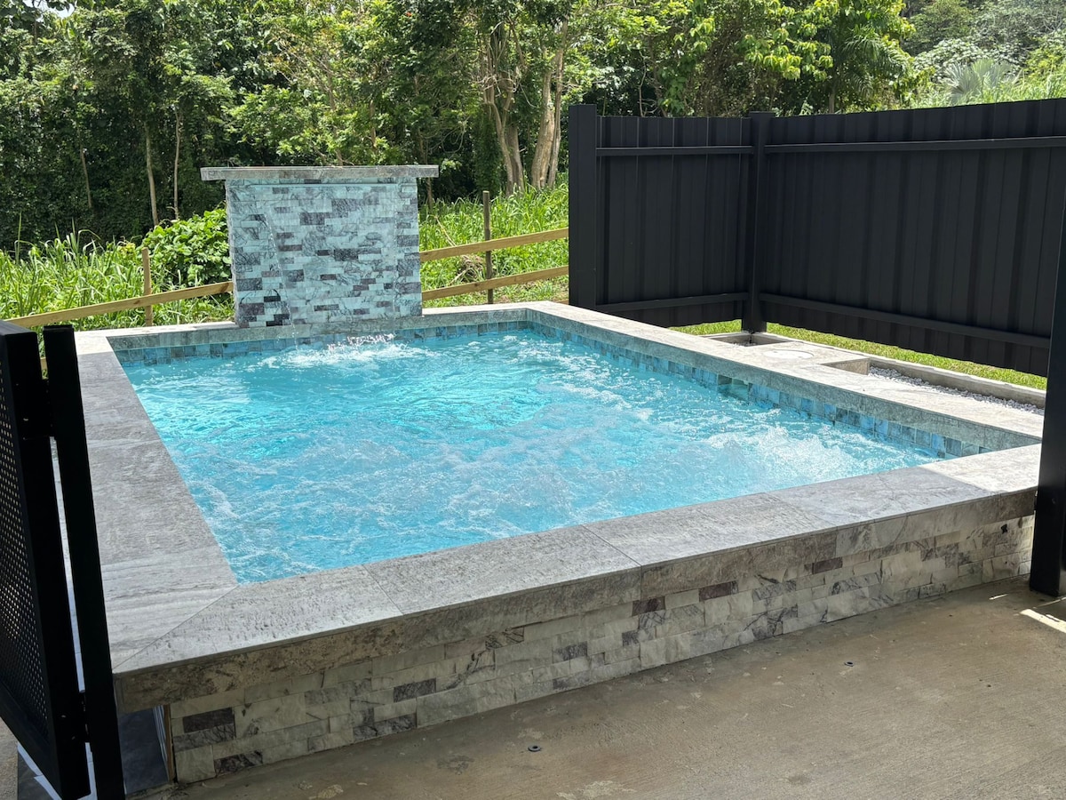 🚨SJU✈️40 min/💦 Casa completa con jacuzzi privado con una increible vista hacia las montañas. A 15 min del Charco el Hippie, 12 min- Bacoa Restaurant, 18 min- Malecón Naguabo🦐 25 min de ceiba ferry terminal ⛴️ para Vieques y Culebra, 20 min de la playa Seven Seas en Fajardo 🏝️10min de cultivos fresco , recorre fincas a caballos y difruta de la comida puertoriqueña. Este lugar es Ideal para amantes a los atardeceres, citas románticas, amigos y/o trabajos remotos⛰️