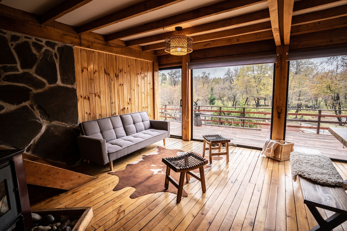Relax with the whole family in this cabin immersed in nature. Enjoy the panoramic view from the living room and walk outside the property to the Las Cabras estuary itself. 800 meters from the main road, restaurants and businesses, easily accessible by road to Shangrila or Calle Los Ñirres. 7 kilometers from the center of Ski/Bike park Nevados de Chillán. 200 meters from a minimarket.
