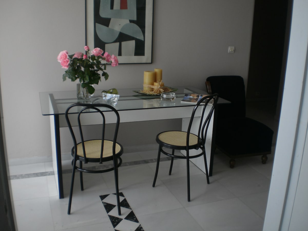 Our house is a comfortable central apartment located on the 5th floor of a building.it has a large area at the entrance,a comfortable living room overlooking the blue Ionion and with unforgettable sunsets.there is a kitchen with all amenities (fridge,cooker,coffe maker) and all necessary.Also has a separate large bath,clean and airy.Finally,there are two large bedrooms with large double beds.The apartment is only 5 minutes from the central square.There are many shops,restaurants and coffe shops.Next to the apartment building there is a mini market,greengrocer's,butcher,pharmacy and other.At 300m you can find a big super market,a bus station with destination Ancient Olympia and the port of katakolo.Finally there is and taxi ranks.