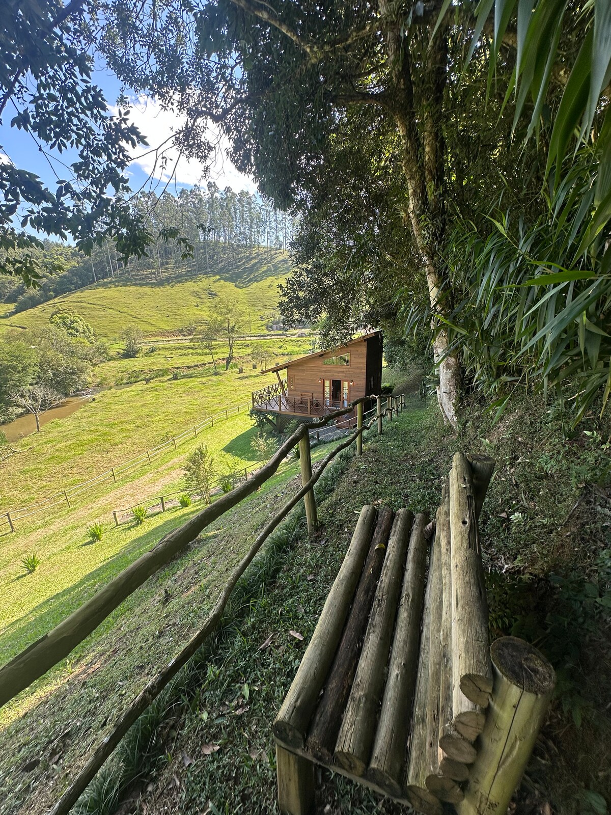 Next to SERRA DO RIO DO RASTRO. The cabin has a “green” view on all sides. The bathtub is under the canopy of trees and fully integrated with nature. It is like being in the woods, but with the comfort and safety of being indoors. The place is quite private and quiet, except for the birds singing. On rainy days, the glass ceiling brings you closer to nature and the feeling of relaxation. It has hot water in all faucets, supplied by a gas heater.