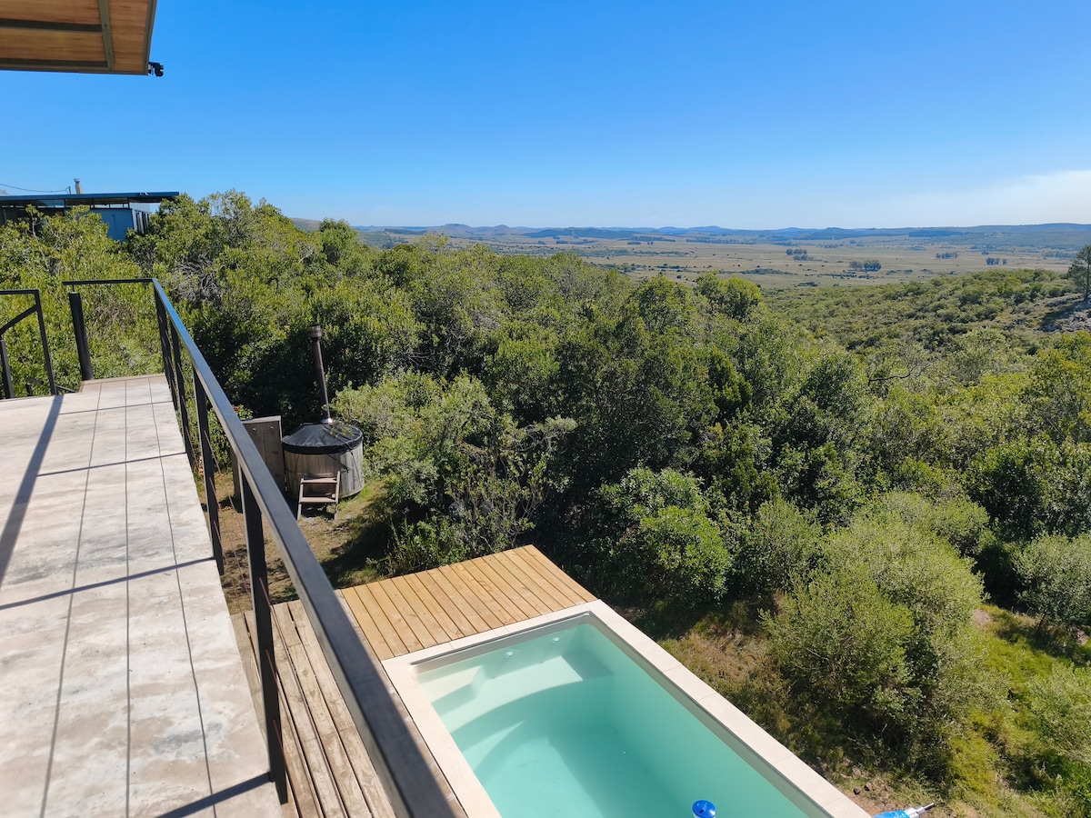 It's time for a well-deserved rest in the best place. “La Escondida” is your best option, it is hidden in the Sierras de Carapé surrounded by duly protected native mountains and unique water courses. We are in the middle of the mountains, the isolation is palpable and the encounter with oneself and one's loved ones is inevitable. The cabin has all the amenities to make your vacation unique, in addition to being only an hour from Punta del Este by easily accessible routes.