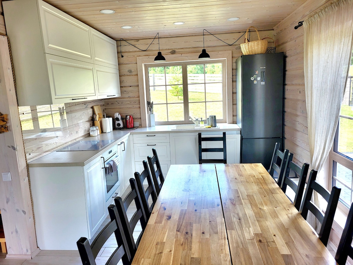Unwind in a cozy cabin in southern Lithuania, surrounded by wild meadows and pine forests on the shore of Lake Dulgas. A few kilometers from major roads, it's a peaceful escape into nature. With modern amenities like A/C and a dishwasher, it’s perfect for families or small groups looking to relax, enjoy the lake (~70m away), and experience the unspoiled beauty of Dzūkija.