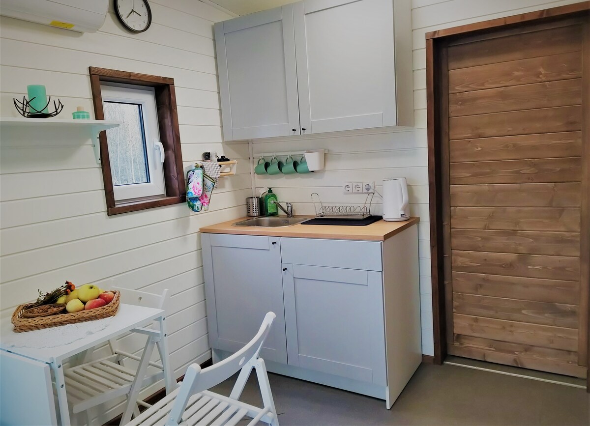 Ramus poilsis dviems,šeimai ar draugų grupei Lazdijų rajone, galimybė įsikurti grupei iki 8 asmenų. Namelyje yra virtuvėlė su mikrobangų krosnele, kaitlentė, virdulys puodai, indai, stalo įrankiai, šaldytuvas, arbata, kava bei cukrus. Galėsite viską puikiai pasigaminti taip lyg namuose! Namelyje visi patogumai: wc, dušas ir kriauklė. Vakaro malonumui galėsite pasikaitinti karštoje pirtyje arba pasimėgauti kubilo burbuliukais ant ežero kranto ( Pirtis- 50eurų vakarui Kubilas- 70 eurų vakarui)