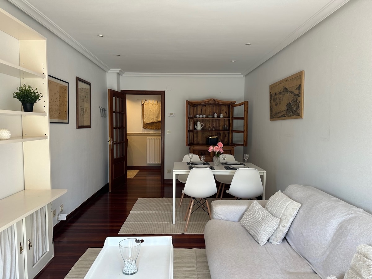 De estilo urbano y acogedor, este nuevo apartamento de un dormitorio con cama kingsize y sofá cama (144x180cm)se encuentra en el corazón del barrio de Gros, a 1 minuto a pie del centro de la ciudad Impecablemente recién reformado cuenta con aire acondicionado, televisión 55", Wifi, Nesspreso. Completamente equipado para niños y bebés. Perfectamente ubicado a 2 minutos de la estación de autobuses y de trenes, así como al lado de una parada directa de autobús para el aeropuerto de San Sebastián.