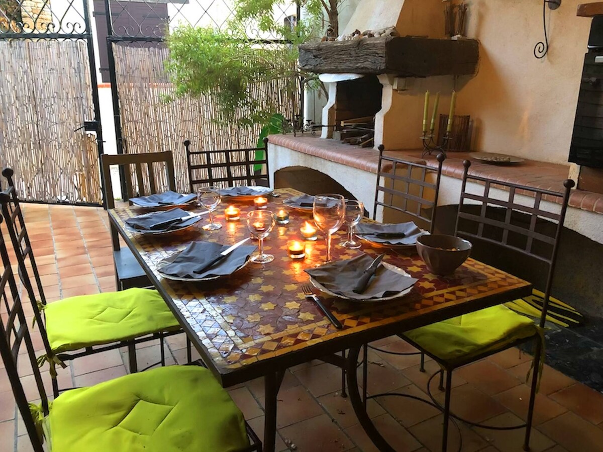 Private Garden Villa – 5 Min Walk to the Beach Spacious 5-bedroom villa (sleeps 10) with 3 double beds, 2 single beds, and a sofa bed. Enjoy a fully equipped kitchen with a dishwasher for perfect shared meals. Ideally located just a 5-minute walk from the beach, shops, and port. Experience the authentic charm of this fishing village—everything is within walking distance: seaside strolls, restaurants, and the Provençal market. No car needed !