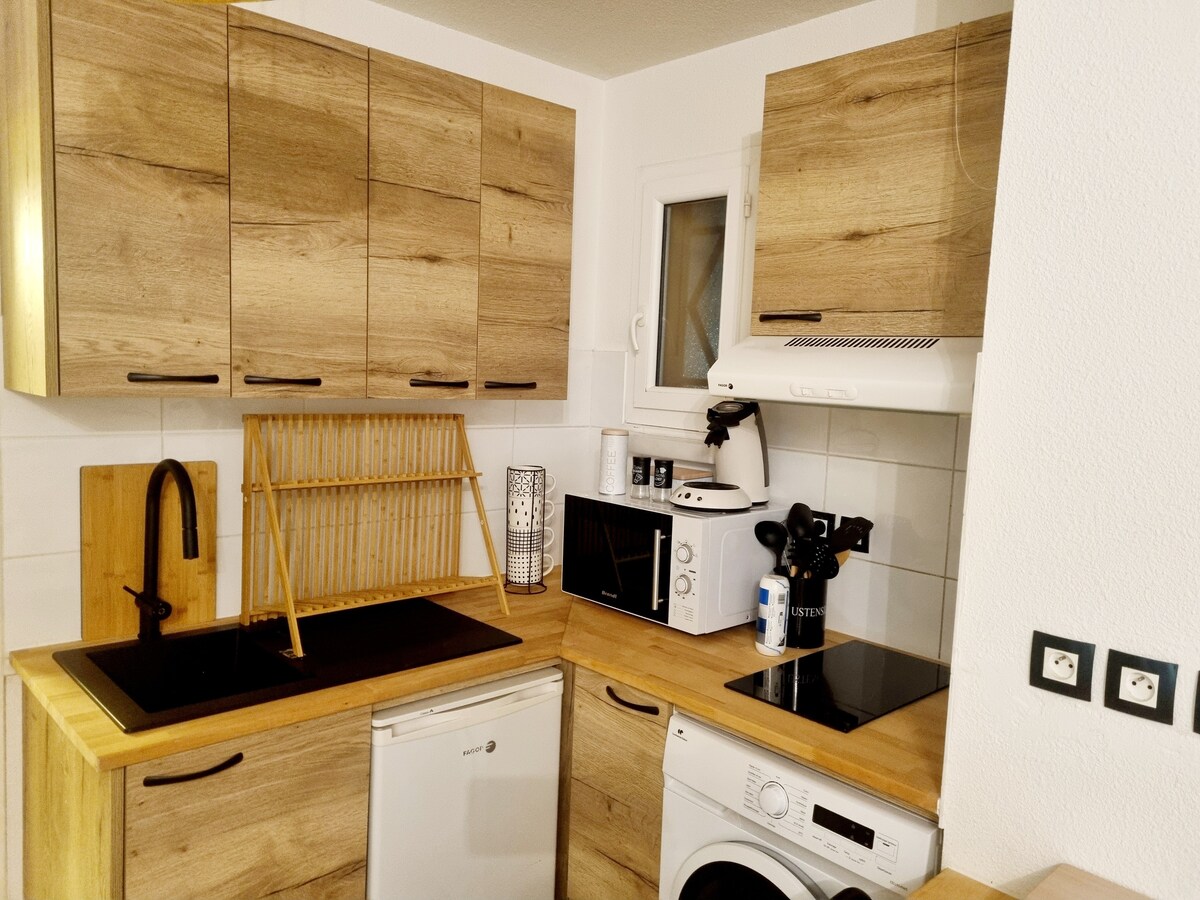 43 m2 apartment with balcony, independent entrance (attached to our house and another cottage), located upstairs with stairs. living room tastefully decorated, 25 m2 with equipped kitchen (fridge, oven, microwave, dishwasher, Nespresso), sofa bed 140, large screen TV, Wi-Fi, small balcony with table and chairs. a nice bedroom with a 140 bed, wardrobe, and desk area. bathroom with bathtub, separate toilet Towels not provided Sheets and/or cleaning fee not included