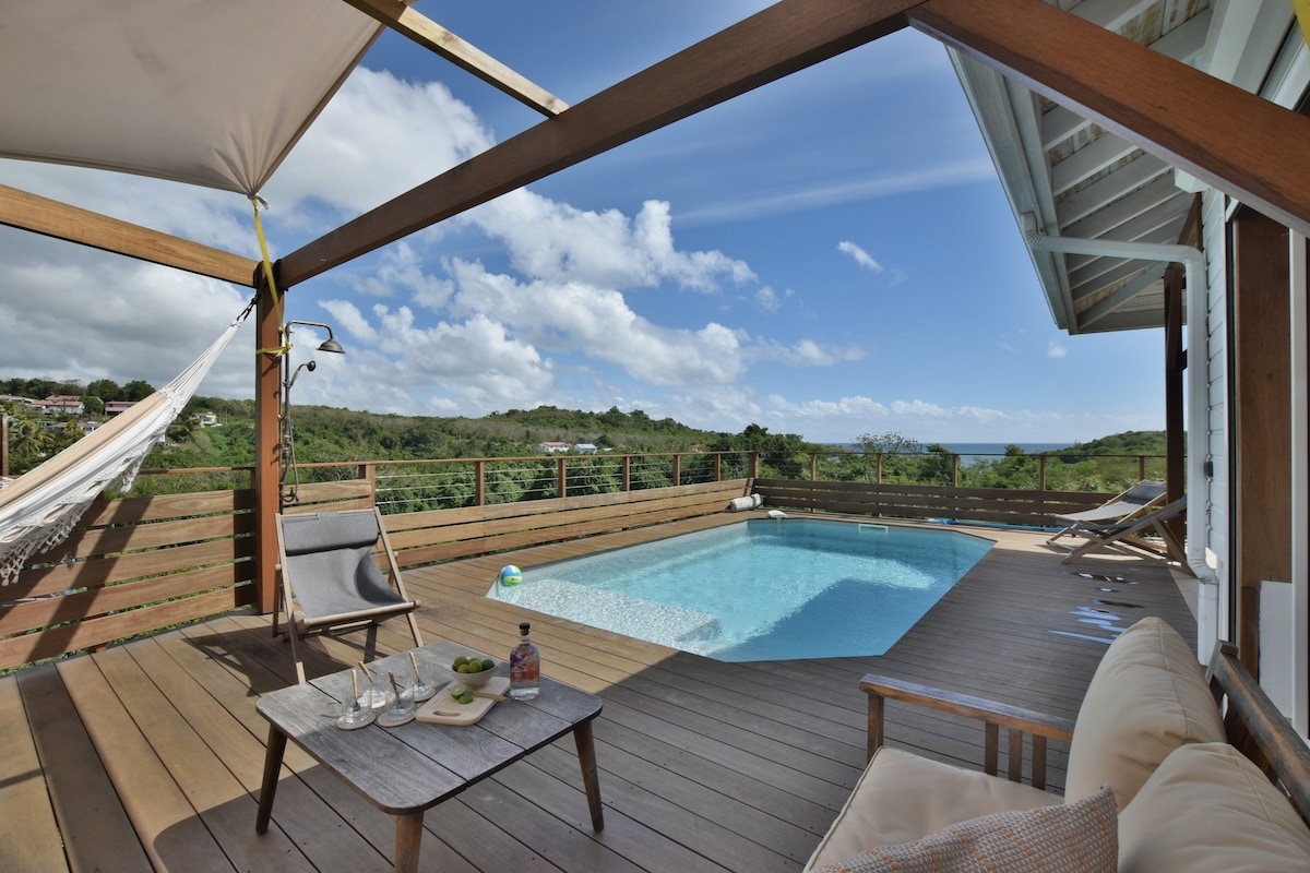 Located on the heights of Marin in Martinique, the site offers a sumptuous landscape framed between sea and mountains. Here, the omnipresent nature aims to offer you a stay based on well-being and relaxation. The house has been designed and furnished to accommodate two soul mates who will need calm and disconnection. The spaces are comfortable and carefully decorated with attention to detail, creating a chic and refined atmosphere. Ideal for a couple alone or with a child.