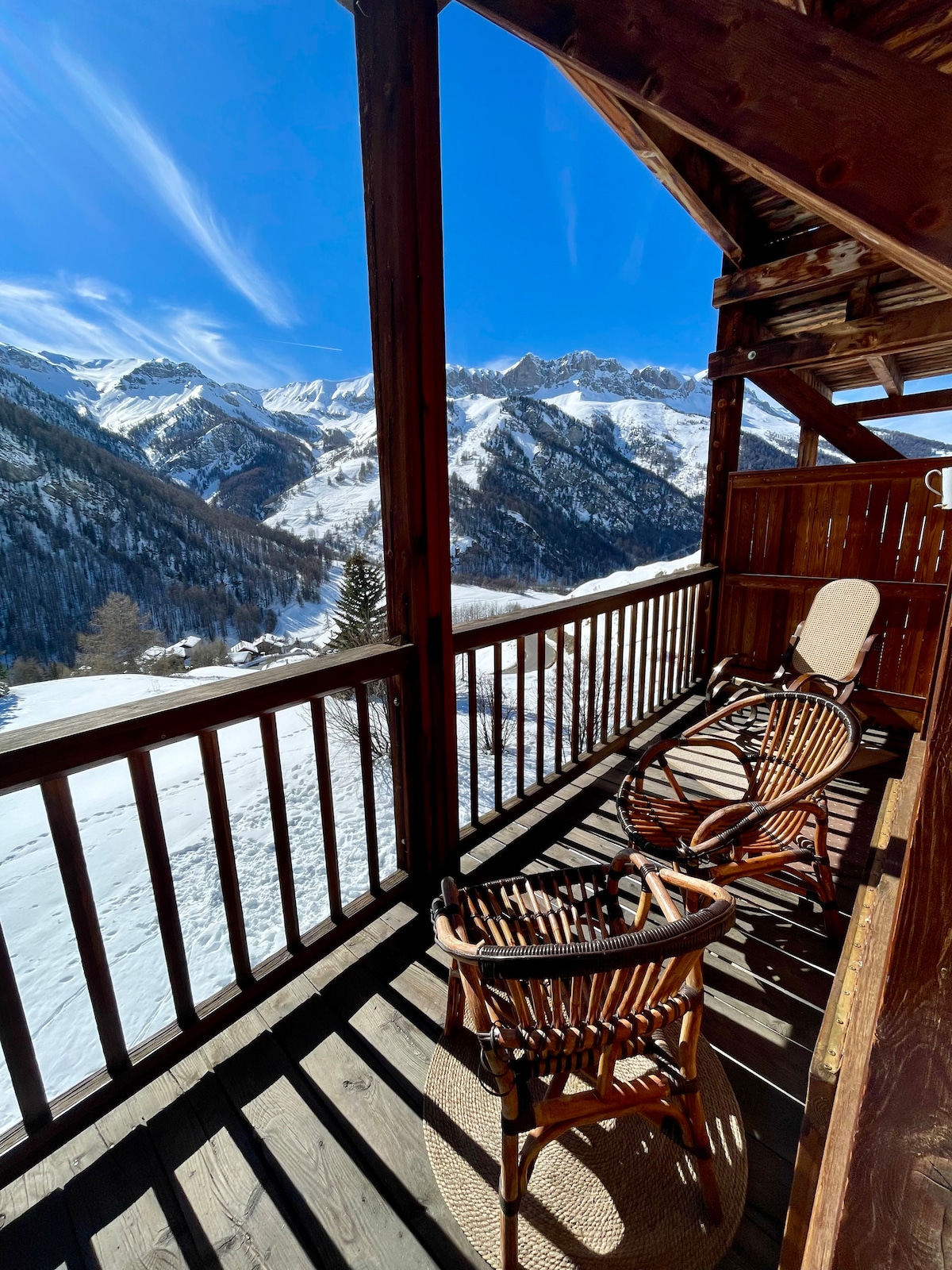 Accommodation located facing south, at the start of hiking trails in summer and skiing in winter, in the village of Saint Véran at 2035 m, facing the mountains. Apartment with terrace, independent entrance. Linens and towels included. Books, IGN map, and topo at your disposal. Paid parking at the foot of the accommodation. (rates are indicated in the arrival guide, to give you an idea it's €12/week, from June to September and from Christmas to March. No smoking, we do not accept pets.